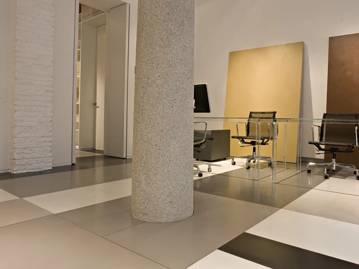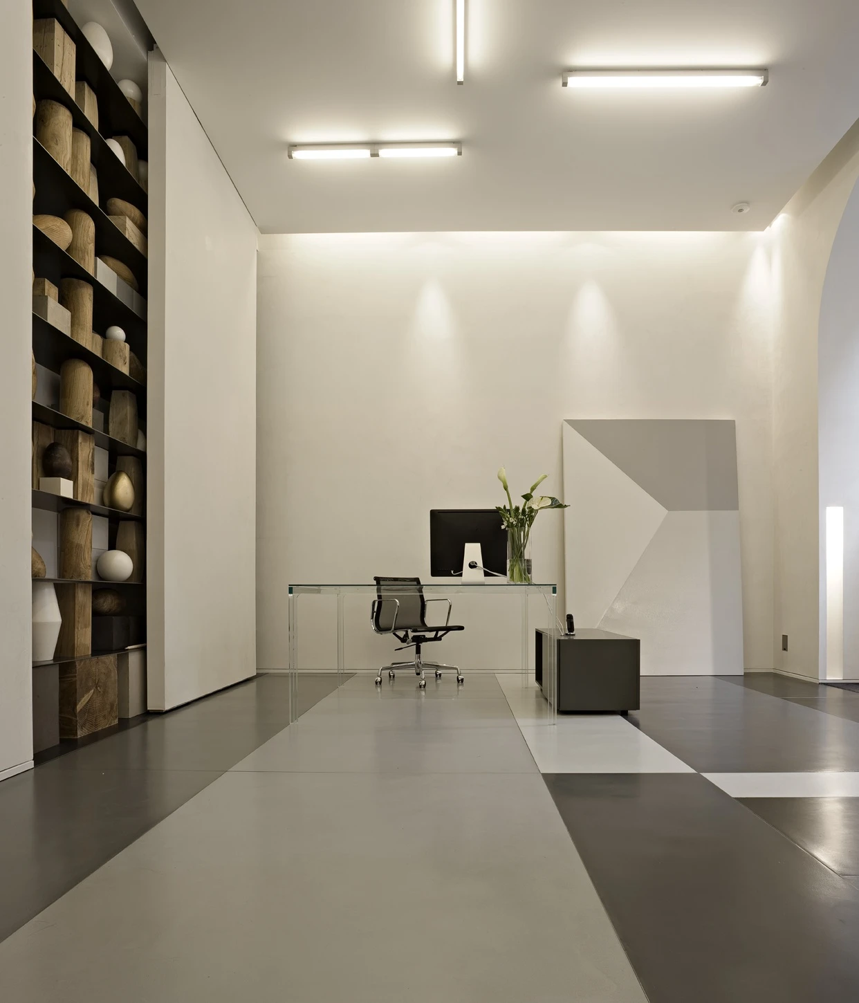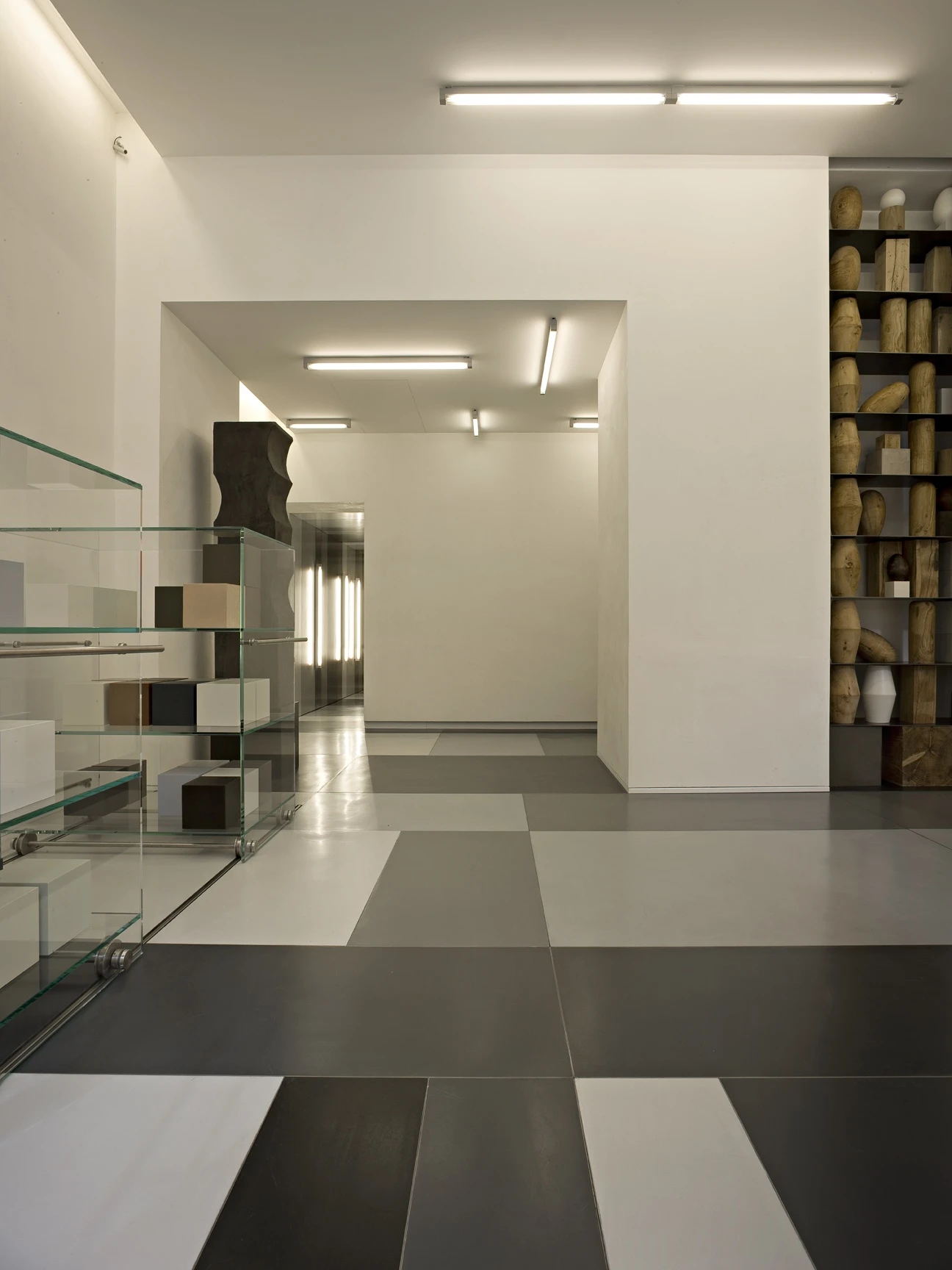 A world leader in the production of resin composites, Kerakoll opened its first showroom in the centre of Milan. The project recreates the idea of a contemporary art gallery, the walls hung with large monochrome panels from the Kerakoll collection and inspired by the Abstract Movement.