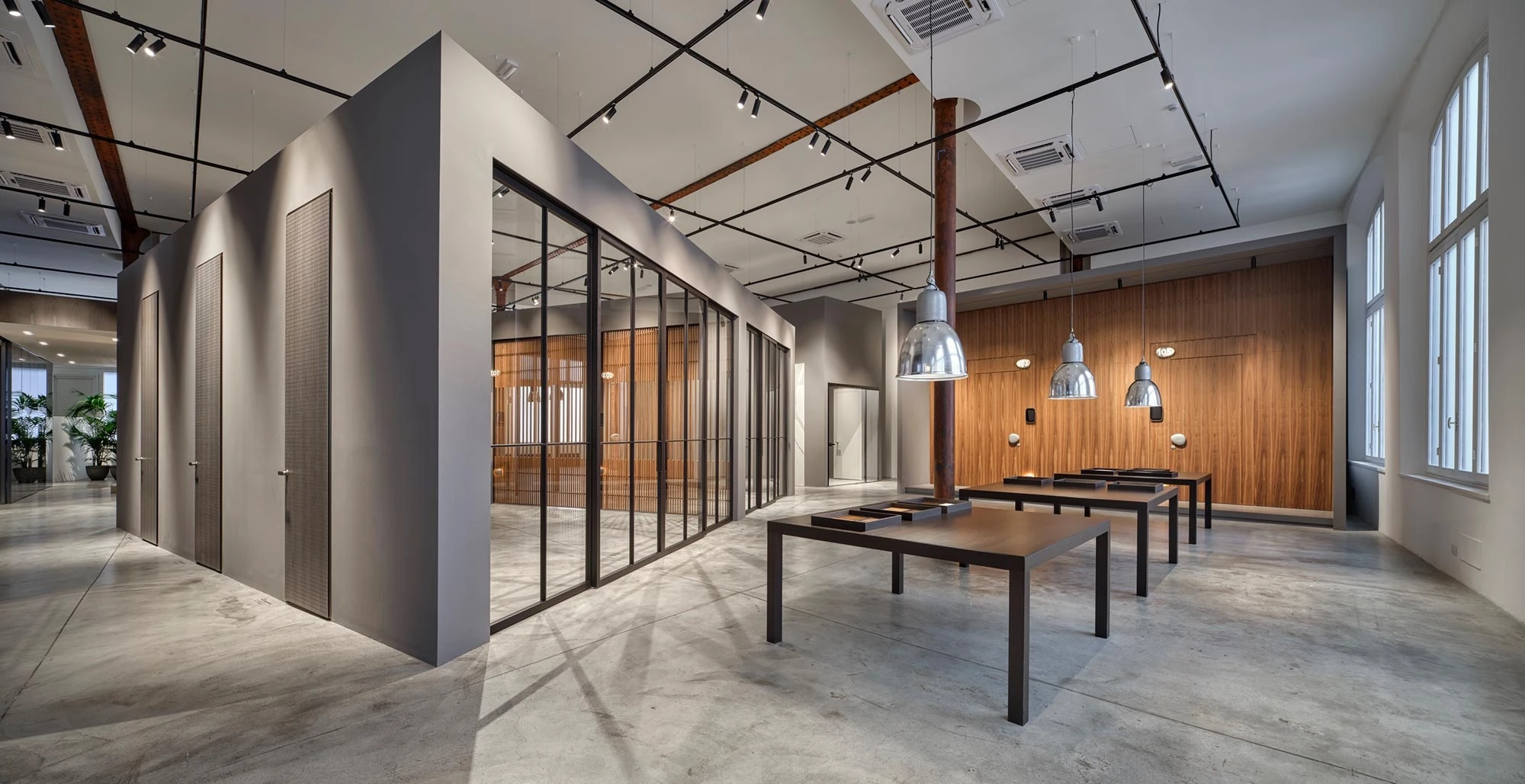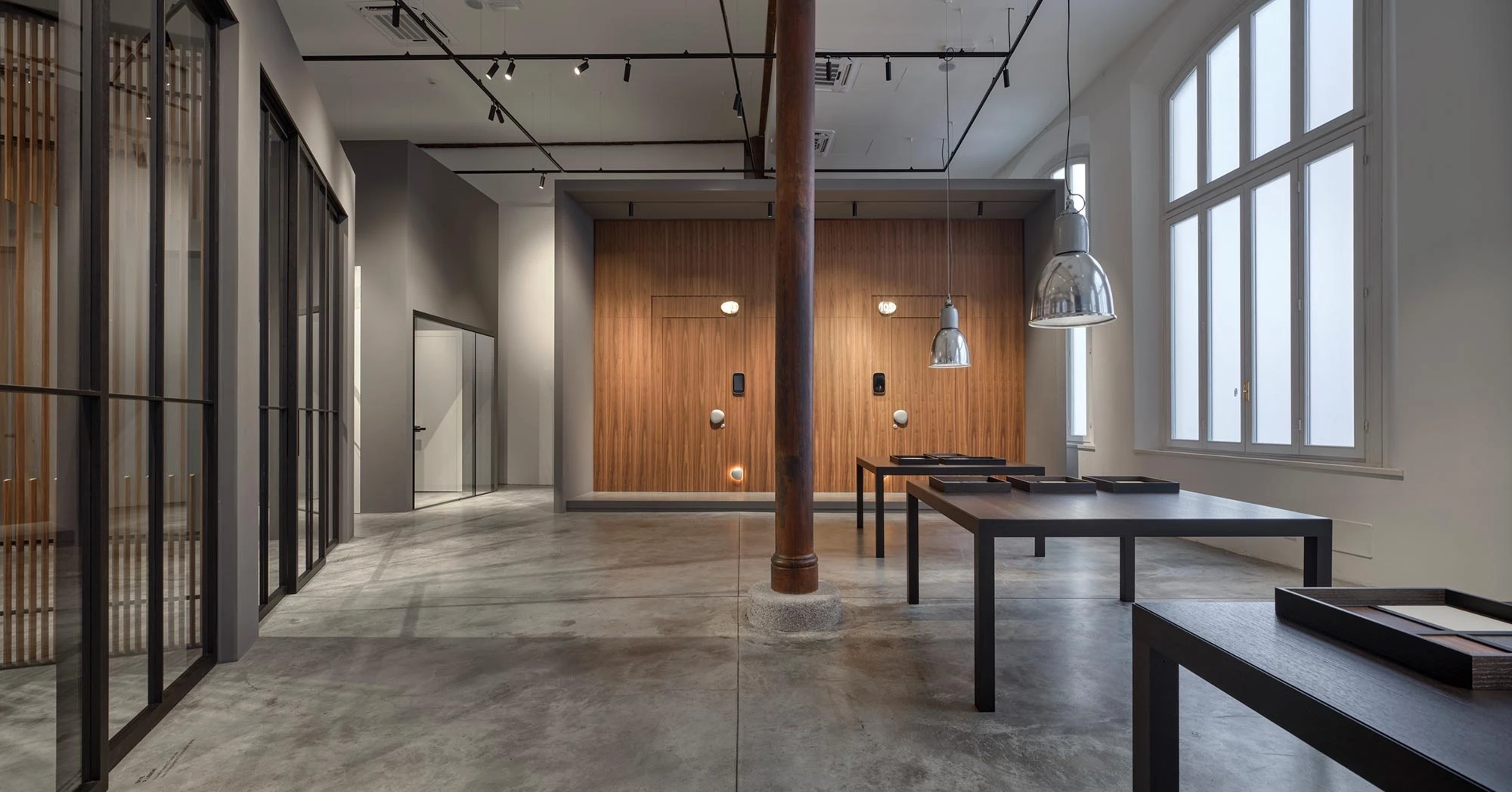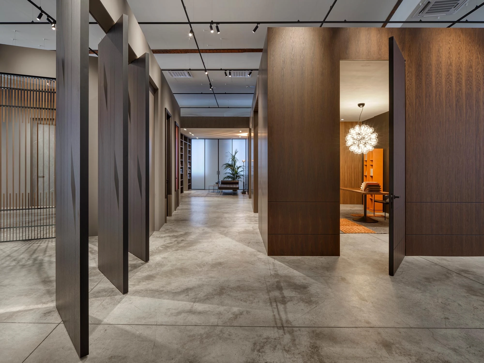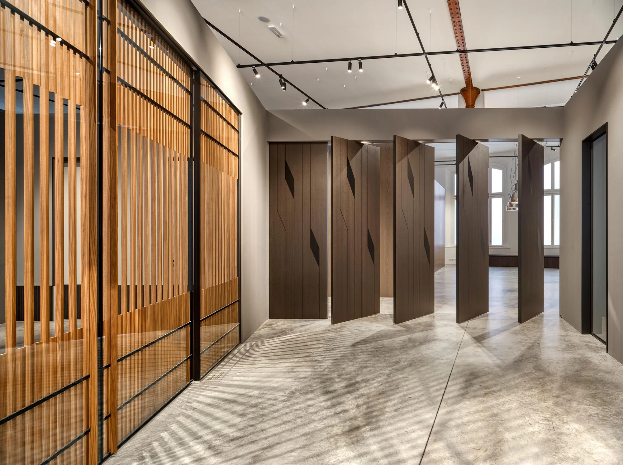 “The former Olympia Theater is a place that by its very nature lends itself to narration. In developing the new fit-out, we did no more than respect the soul of this location, transforming it into a theatrical setting, ready to act as a backdrop for ever new stories. In this context, the doors fulfill different functions: central characters or totally hidden, they produce a sequence of environments in a kind of artistic labyrinth.” - Piero Lissoni