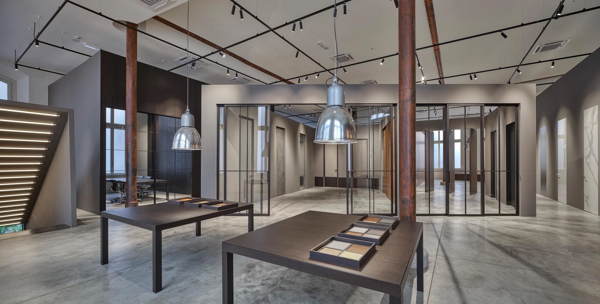 Lissoni Associati has designed the new mono-brand showroom for Lualdi in the former Olympia theatre in Foro Bonaparte, Milan.