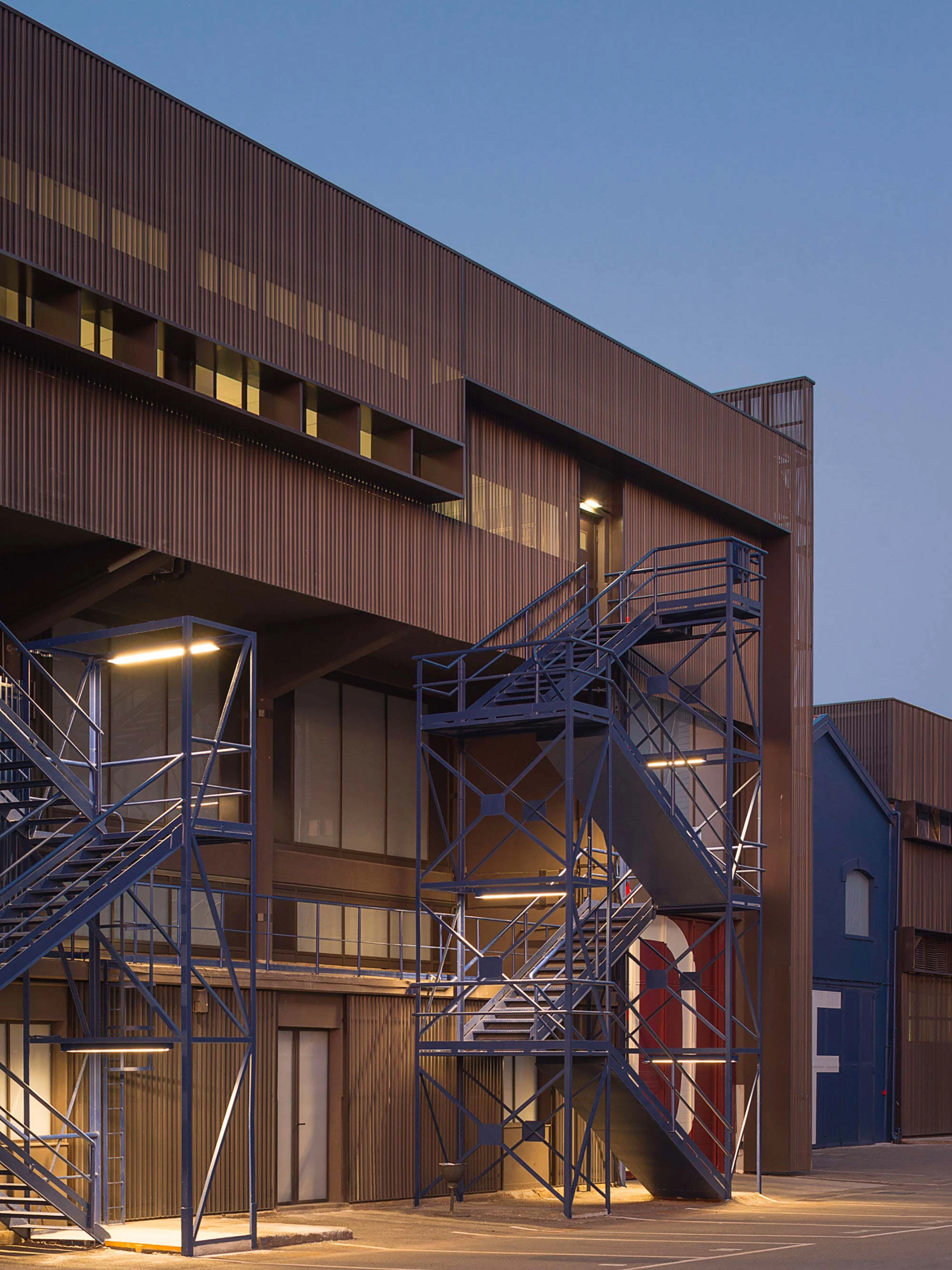 The area of the intervention included five buildings and two warehouses which were cleaned up and brought back to their original simplicity, emphasizing the strong industrial nature of the architecture through a coherent choice of materials.
