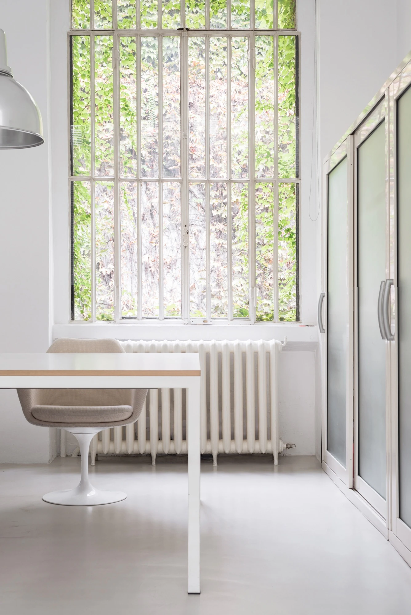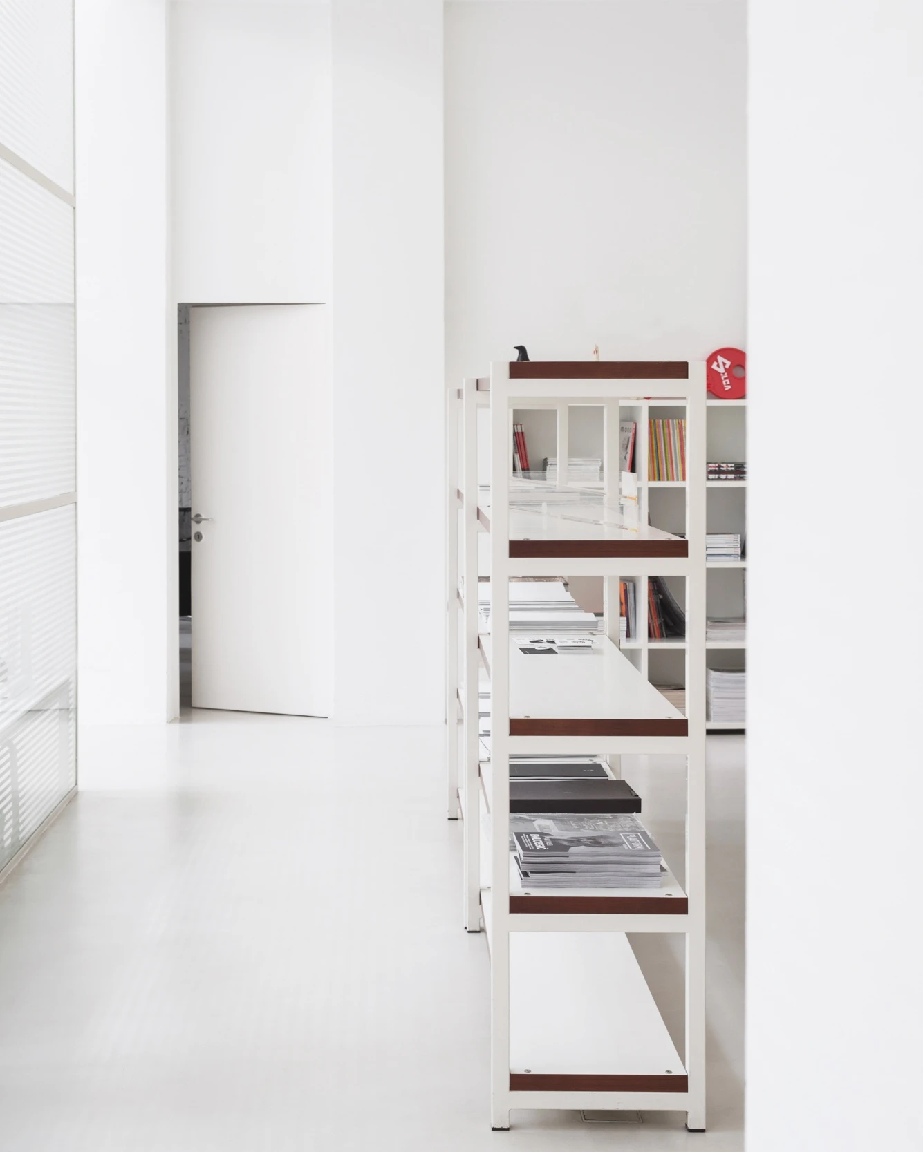 The Milan headquarters of Lissoni & Partners occupy the rooms of an early 20th century warehouse, once also used as a ceramics showroom. White is the dominant colour for the vast, luminous and functionally furnished spaces bounded by ample glazing. Distributed over 950 square metres on three levels, the studio accommodates Piero Lissoni’s office, which faces onto a verdant internal courtyard, along with space for the architects, designers and the graphic designers, several meeting rooms, a library, a rendering room and a modelmaking/archive area.