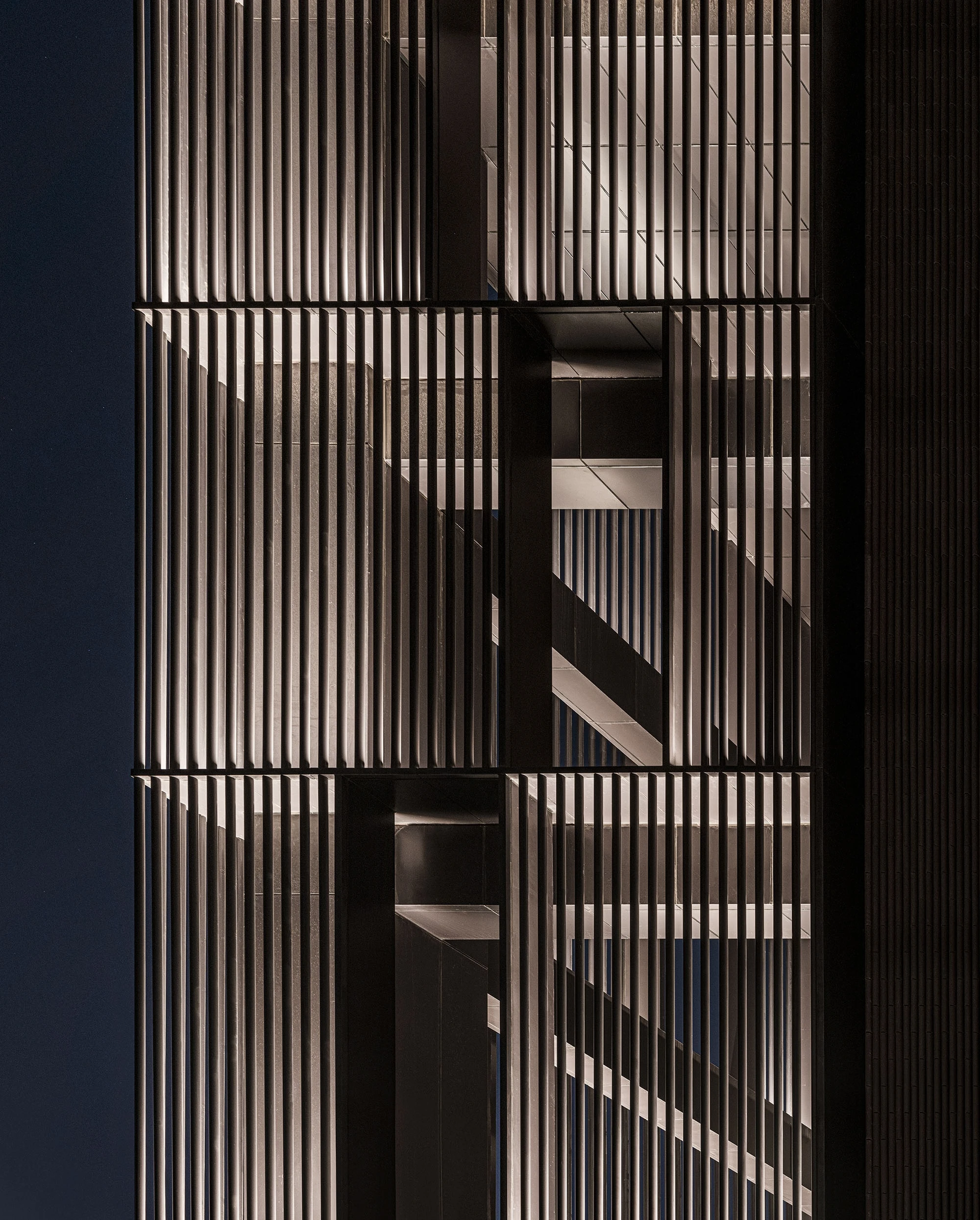 The building that houses 282 rooms is connected to the Main Building by an elevated bridge. The design intent here was to soften the overall massing by dividing it into smaller volumes separated by vertical openings.