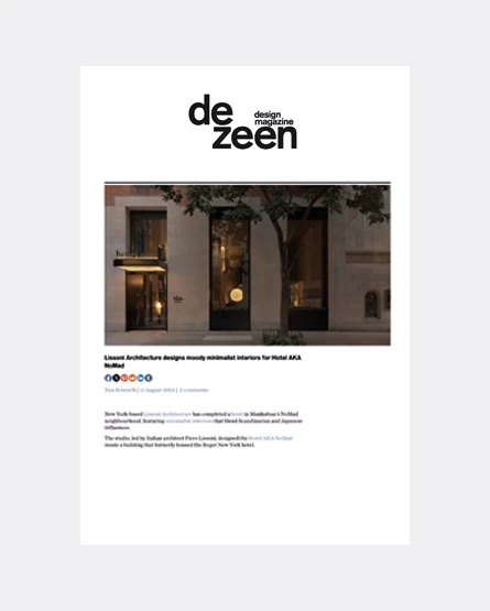 The new Hotel AKA NoMad is distinguished by an atmosphere of tranquility and peace, a place of refuge in the city. The entrance is like a filter that transports guests from the pulsating heart of New York into a refined and sophisticated oasis.