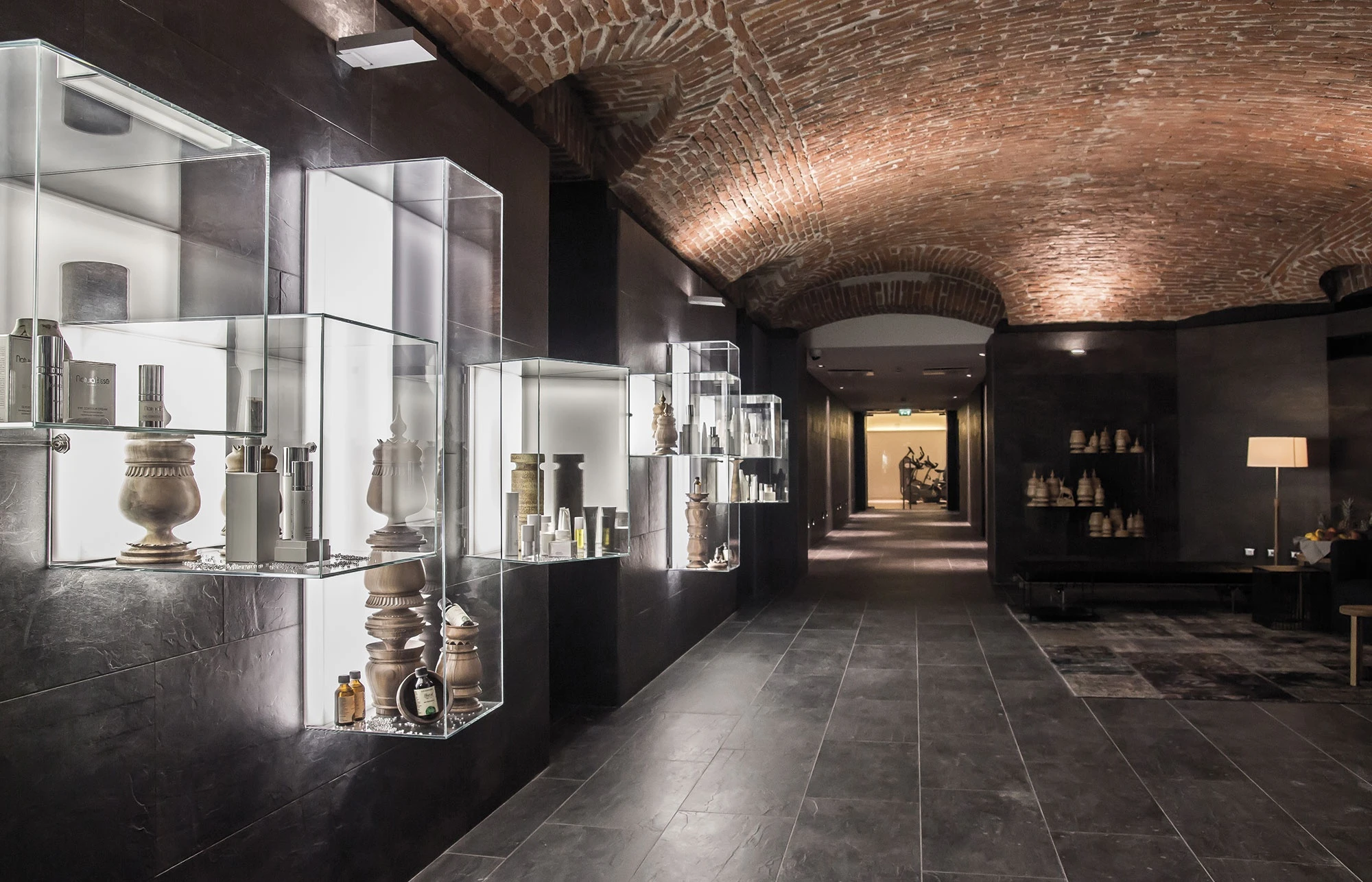 The Saint Vincent Resort project envisages the construction of the new Eve wellness center in the basement of the Grand Hotel Billia, where the old vaulted structures have been restored. By lowering the cellar floor and carrying out a series of important structural interventions, this area hosts the space dedicated to the spa. All the external areas are enhanced by improvements in the surrounding green area.