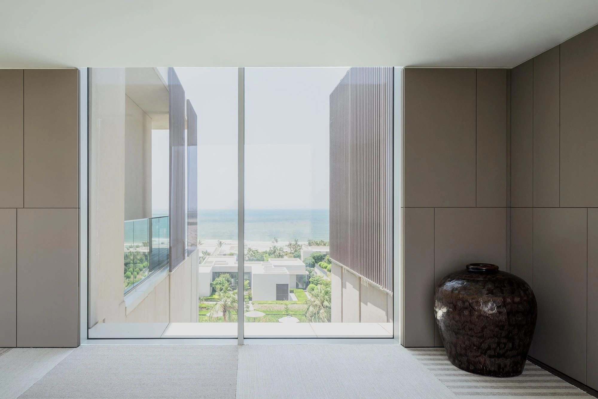The Oberoi Beach Resort in Al Zorah is located around 45km from Dubai. The resort is part of a broad masterplan that was developed by Solidere International in partnership with the Ajman government and comprises hotels, luxury residences, a marina, private beaches, a golf course and an extensive natural park with lagoons and mangroves: a small city for about 40,000 inhabitants with the Oberoi Beach Resort being the first area to be developed.