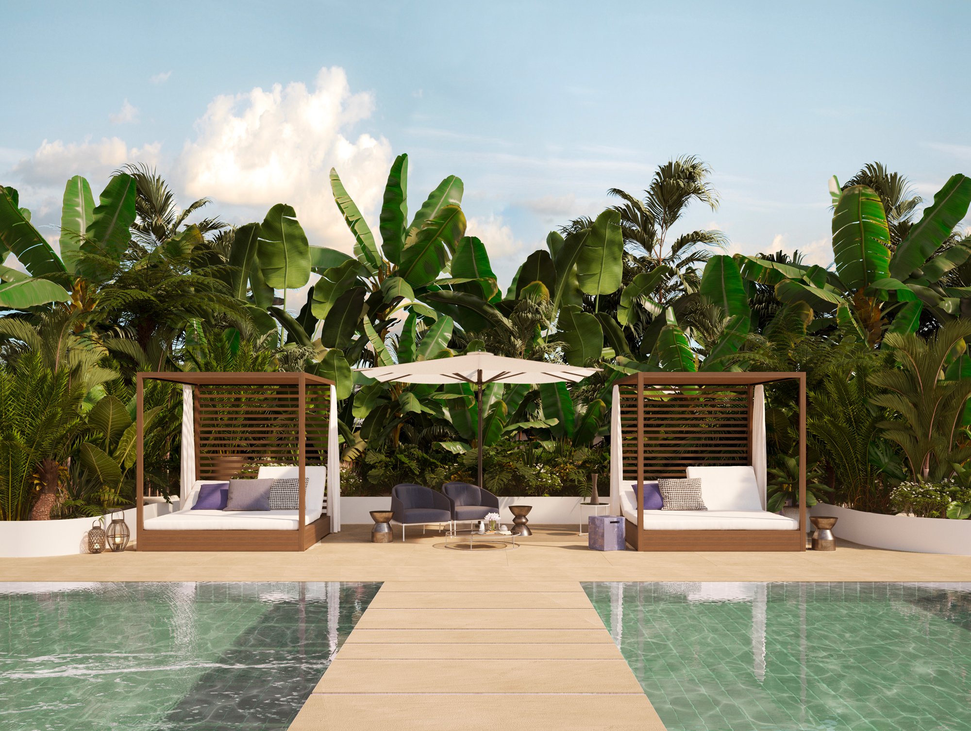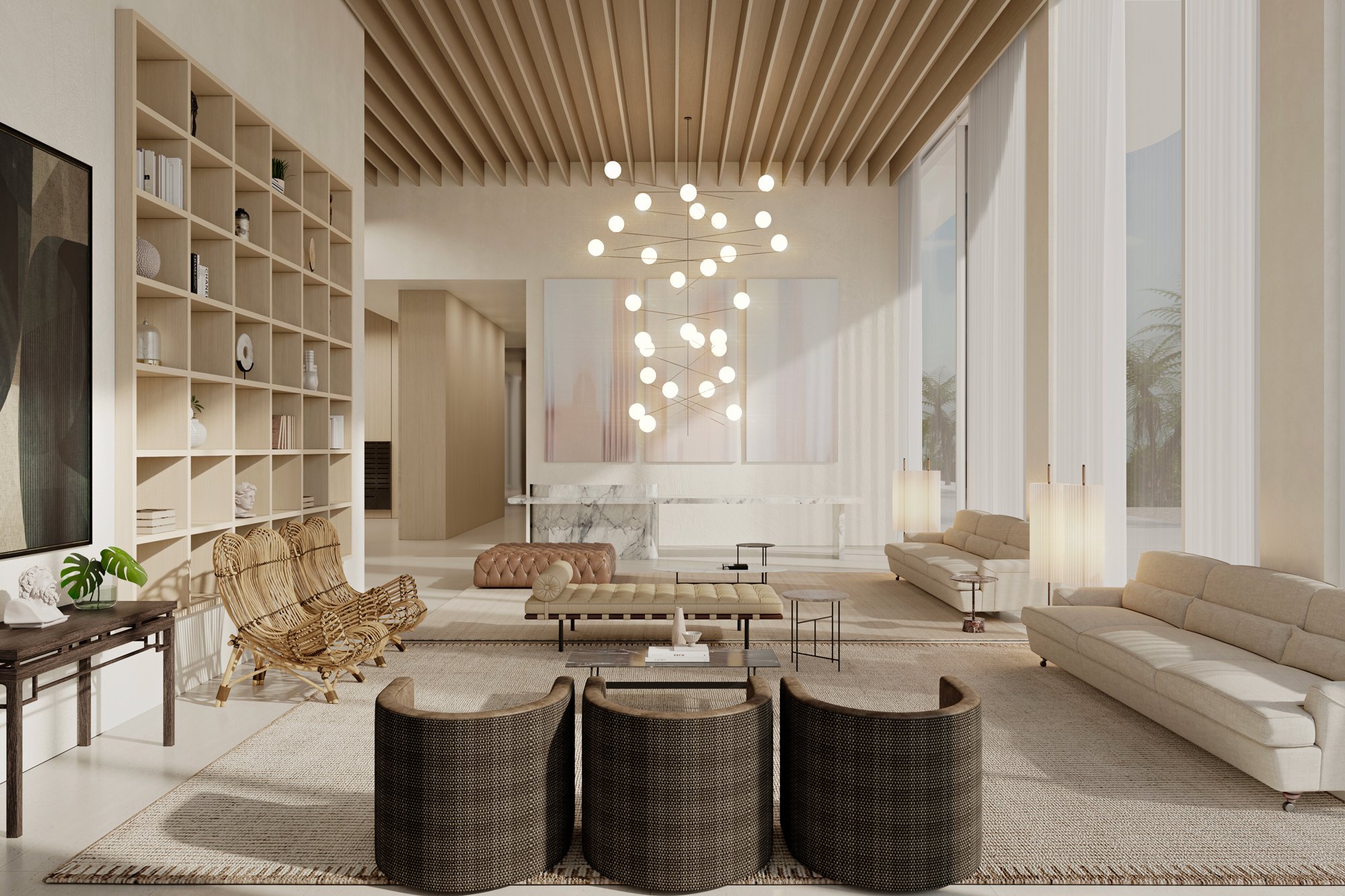 The underlying idea behind the project was to establish a dialogue between inspirations that recall the Italian riviera and those that evoke the spirit of the vibrant Miami coast. A palette of warm, soft and natural shades reminiscent of the colors of the sand and the mediterranean alternate with hints of more vibrant and richer colors, emphasizing this dialogue.