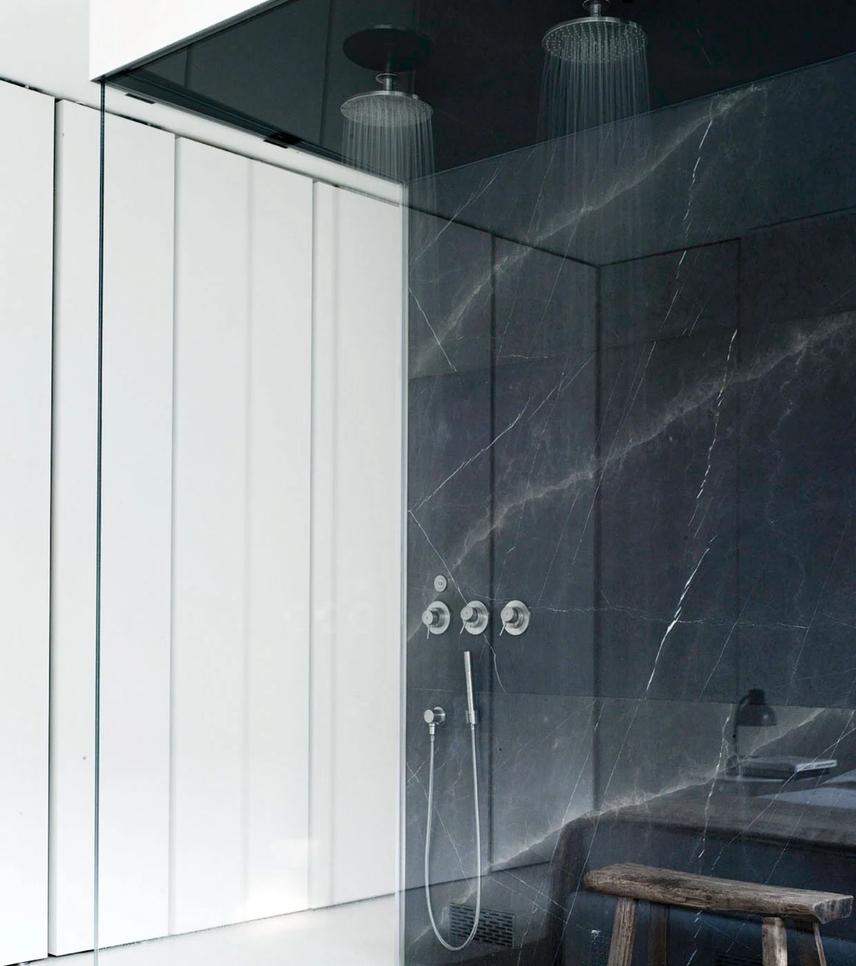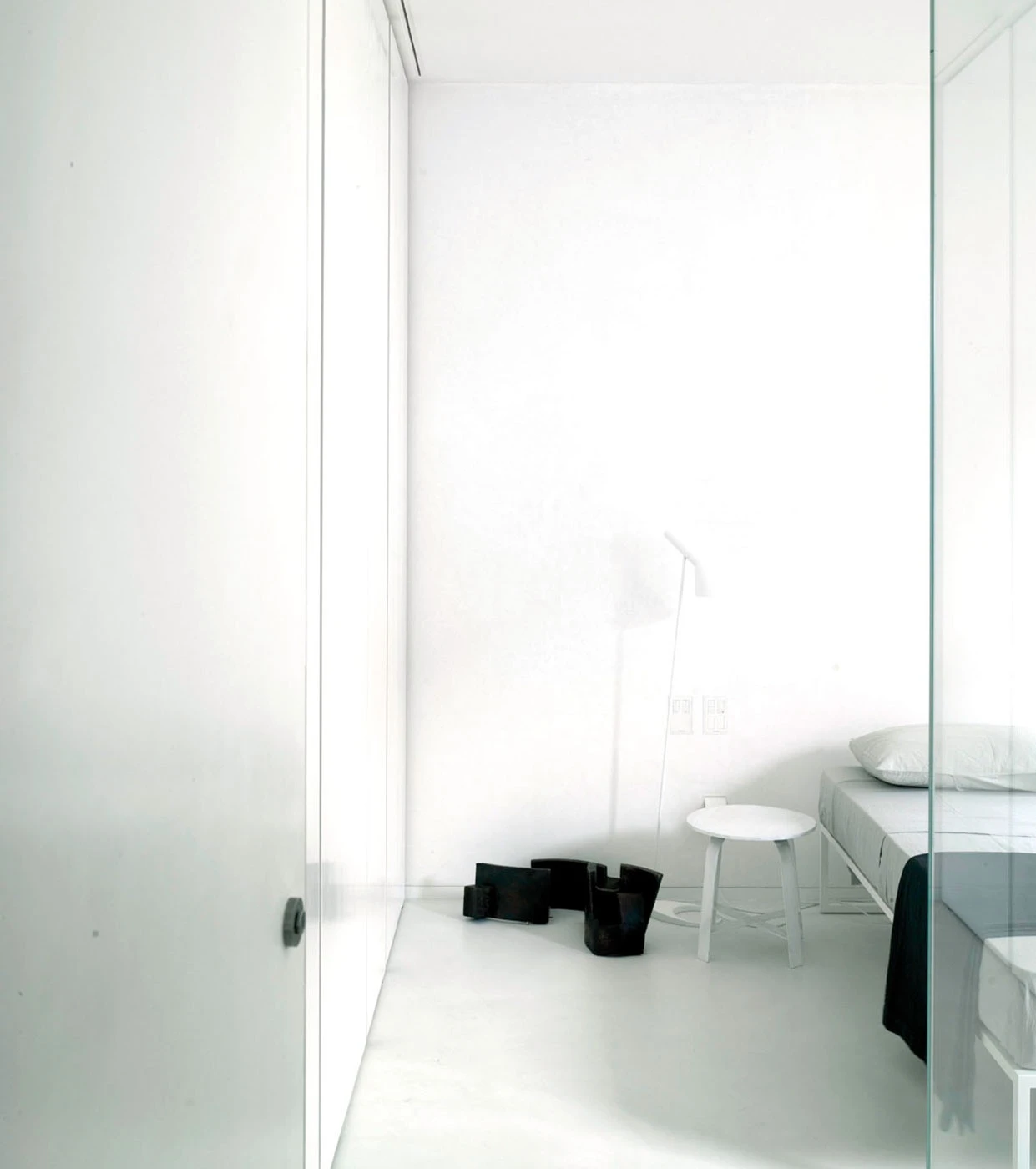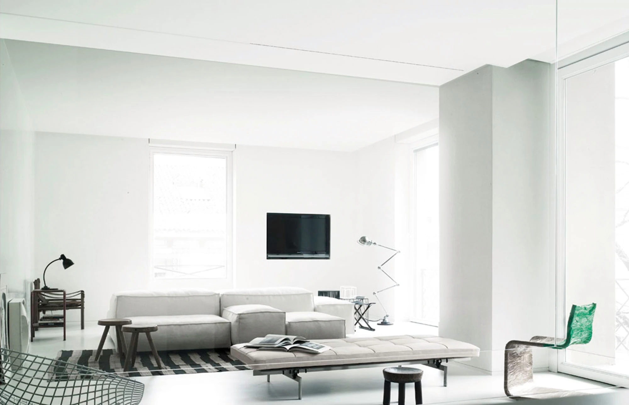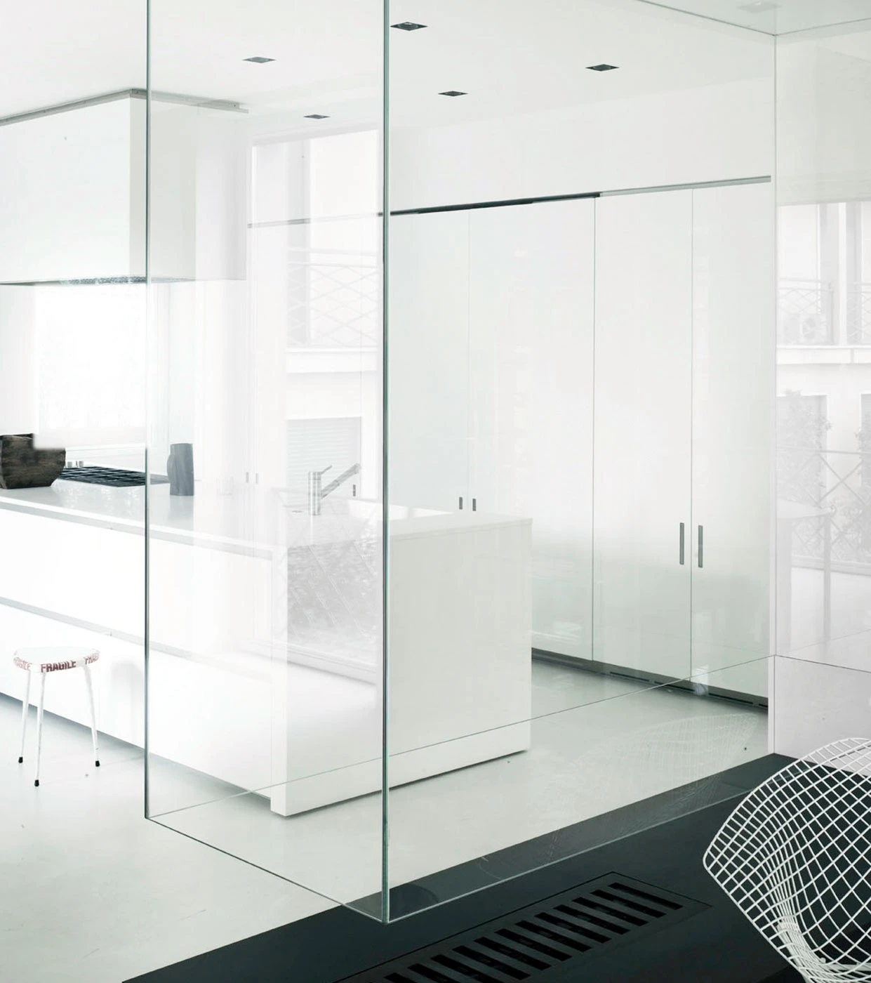 With very modern furniture and well chosen accessories set against an all-white backdrop, this Milanese interior is peaceful, understated and effortlessly chic. Many of the key pieces in the apartment, such as the glass shelving in the entrance, are bespoke handcrafted items designed by Lissoni.