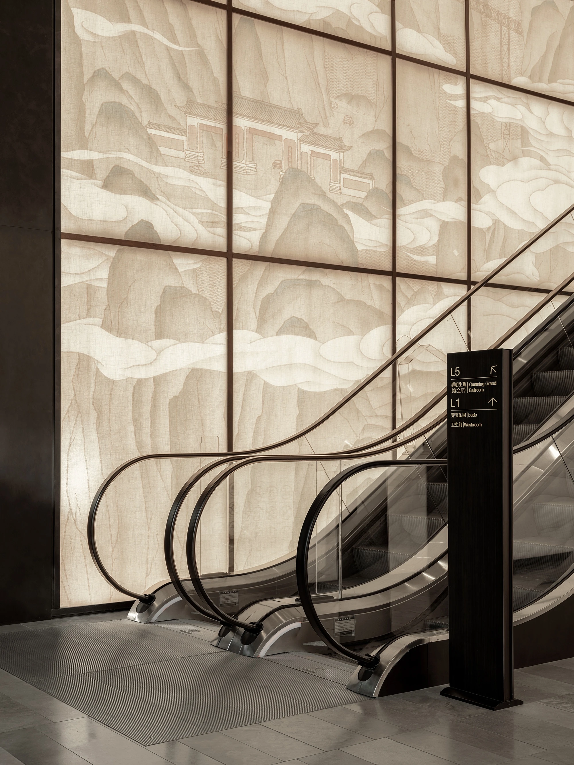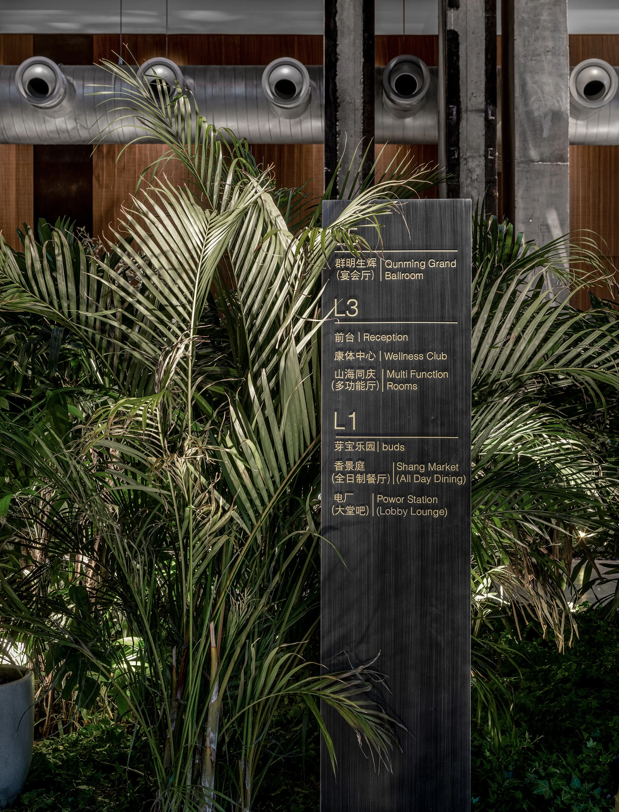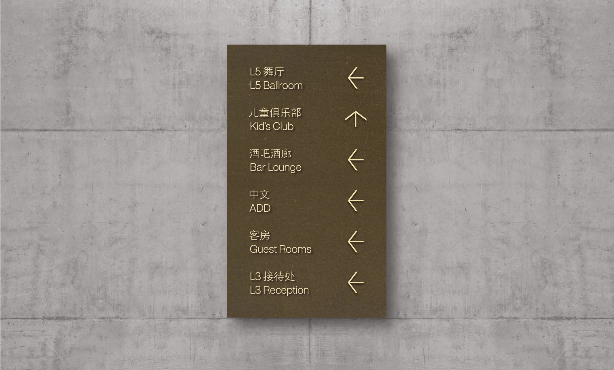 Lissoni Graphx designed the wayfinding system and signage icons for the Shangri-La Shougang Park Hotel in Beijing, China. The system encompasses everything from directional arrows to bathroom symbols to personalized buttons for every room. The design of the symbols is elegant and classic, with minimal details.