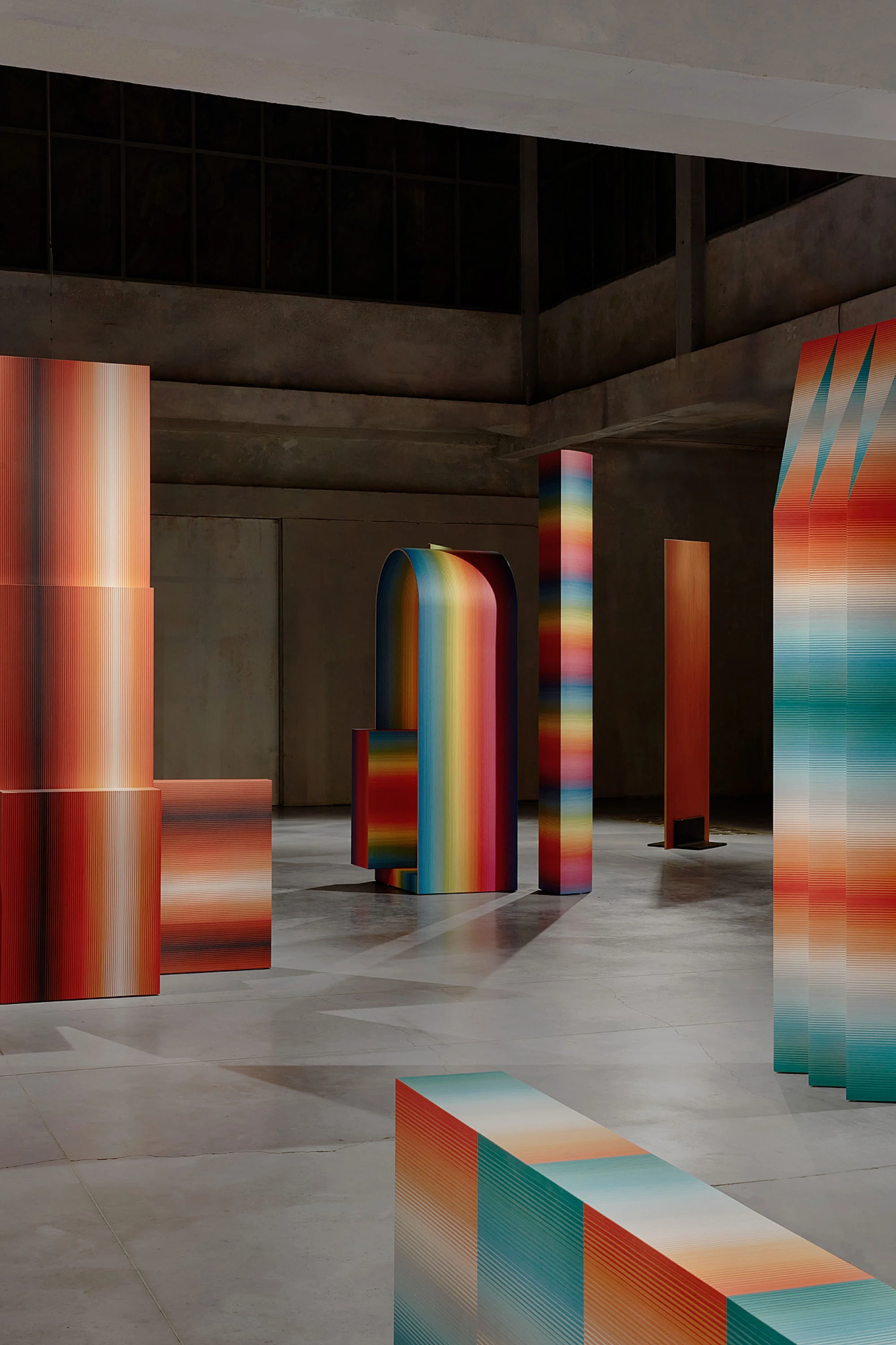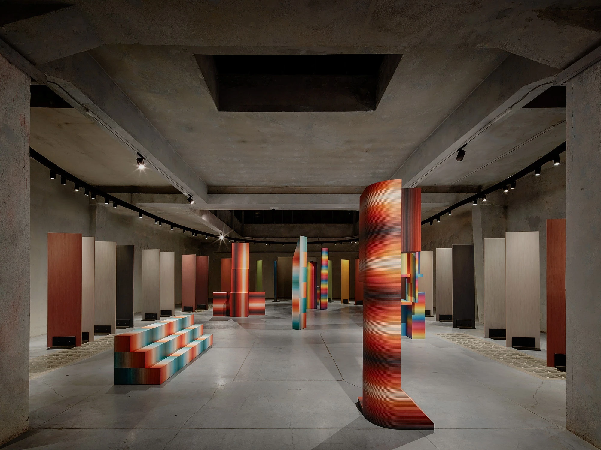 ALPI presented the results of its new collaboration with Konstantin Grcic in an exhibition titled "Prevalentemente soleggiato con rovesci sparsi" on 24 October 2023 in Milan. With exhibition and graphic design by Lissoni & Partners, ALPI has chosen to present his designs in a new location with industrial charm in the heart of Milan: the Rimessa dei Fiori.