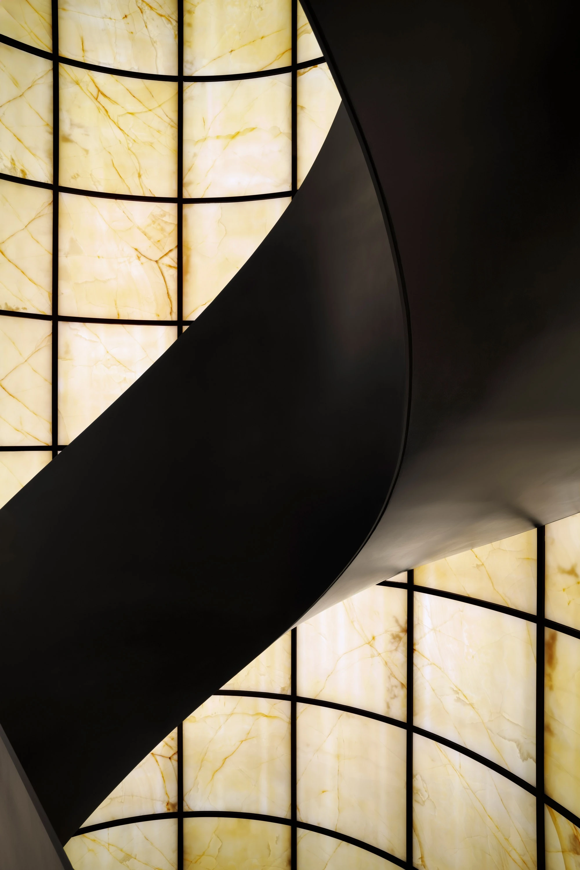 Our interior design drew inspiration from the natural environment of the Vallée de Joux, home to Audemars Piguet, incorporating different materials such as wood, glass and metal into the design while giving the space a Milanese twist. The five floors are linked by a spiral staircase – a nod to the mainspring of a watch. Forming the heart of the building, this staircase represents the space’s inextricable links between tradition and modernity, between Milan and Le Brassus.