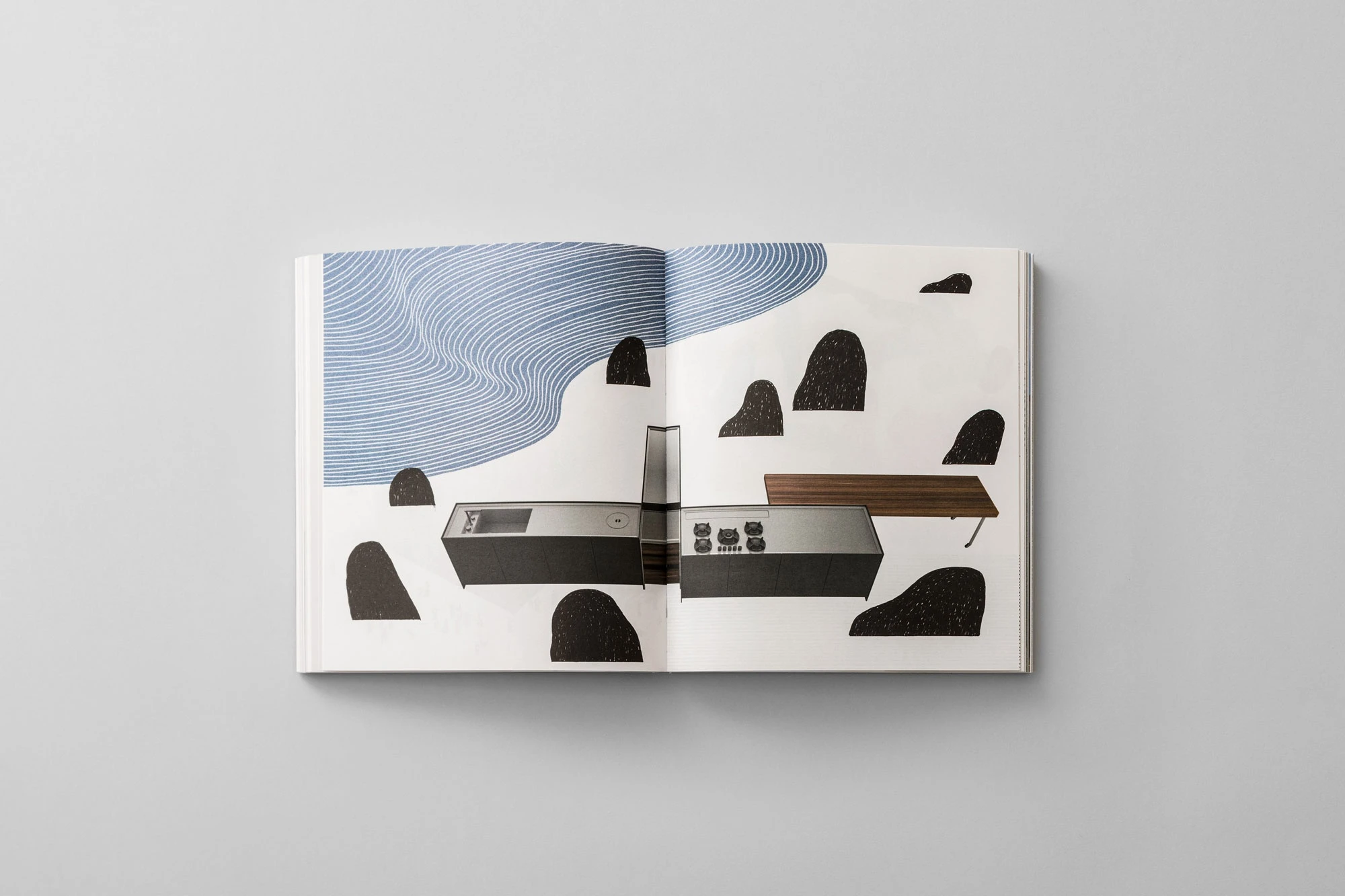 The book was designed by Lissoni & Partners and clearly reflects the studio’s signature style, from the choice of packaging to the paper that alternates to differentiate the two inserts: one on product design, embellished with illustrations by Guido Scarabottolo, and another on graphic design.