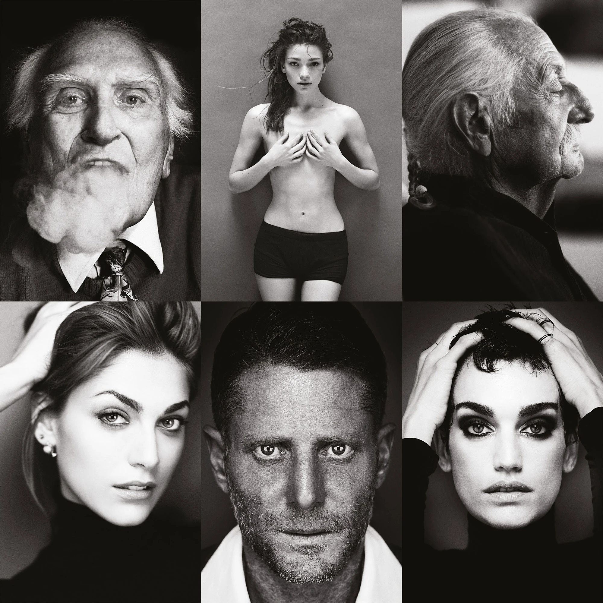 The exhibition also brings a more traditional system of displaying portraiture to present the so-called “colli neri” collection: passing from suggestions of an urban exterior one enters a space with intimations of an interior, a black and white “portrait gallery” of people all attired in dark turtlenecks.