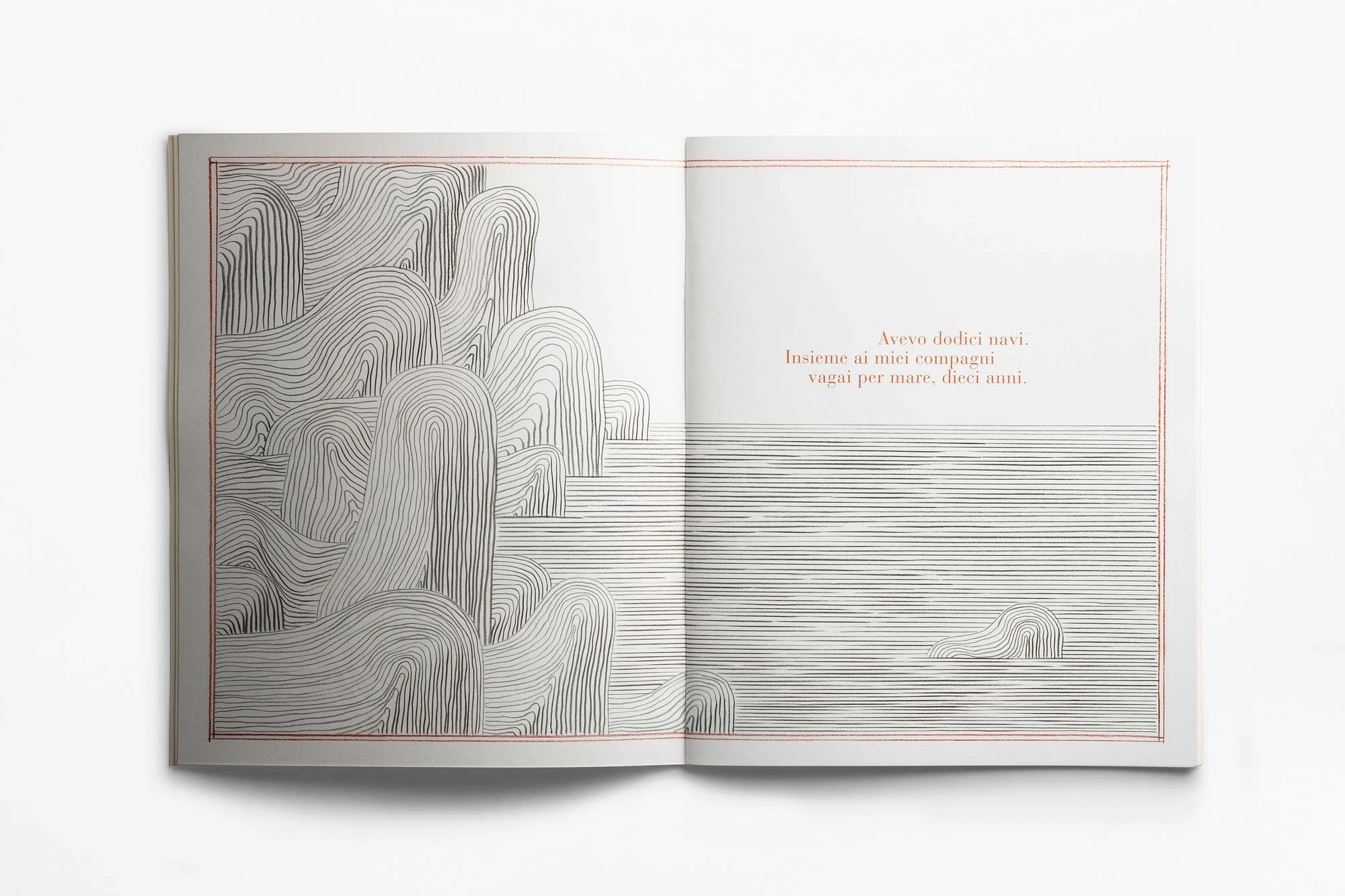Grouped together under the title “Io sono Ulisse”, the drawings were commissioned for the volume Almanac N.1 Voyage, a special project curated by Lissoni Graphx, and comprise a collection of five small books dedicated to the theme of travel, written by Giovanna Zoboli and illustrated by five Italian artists, among whom Guido Scarabottolo.