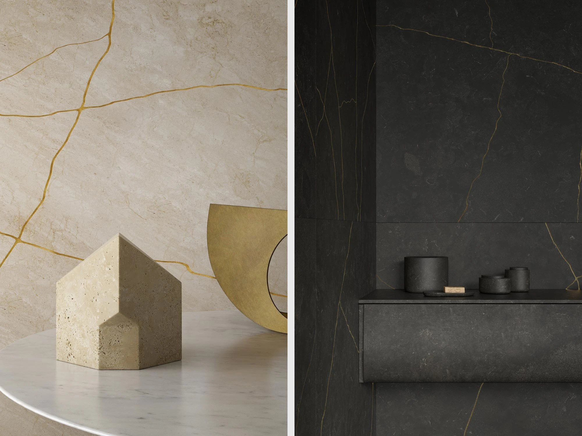 Edo, bathroom collection + Lost Stones, finishing + Pietra L, home collection