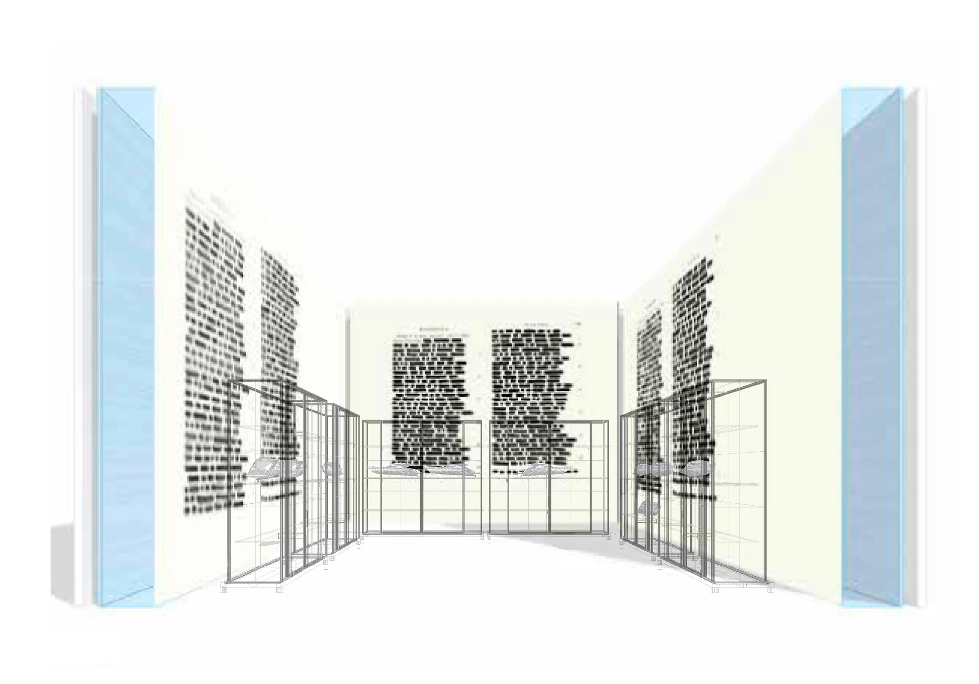 An ethereal, suspended space whose perimeter is marked by Isgrò’s “erasures” reproduced on its walls. A sea made up of lines, signs, words through which the models of Sanlorenzo’s superyachts, displayed inside glass cases, seem to sail around the work “The travels of the mind” by Emilio Isgrò.