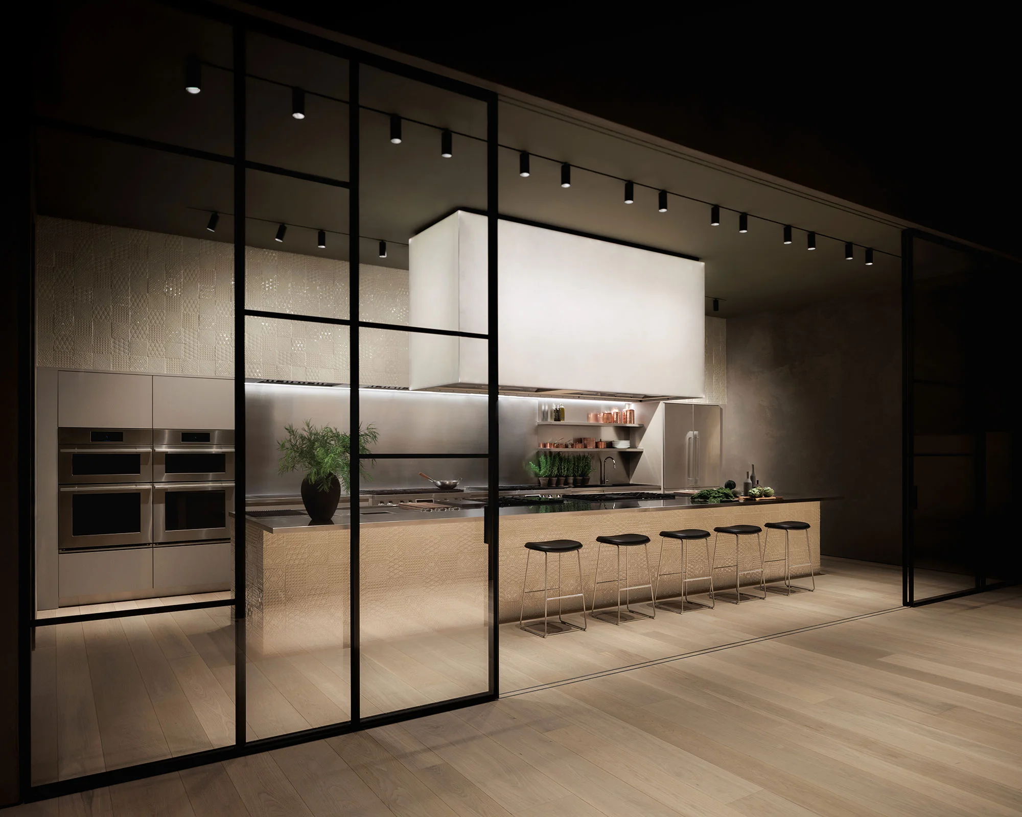 Extending for over 850 square meters and designed by Piero Lissoni with Lissoni Architecture New York, the space is inspired by the “theater” of cooking and establishes a close dialogue with the industrial nature of this historic Chicago building.