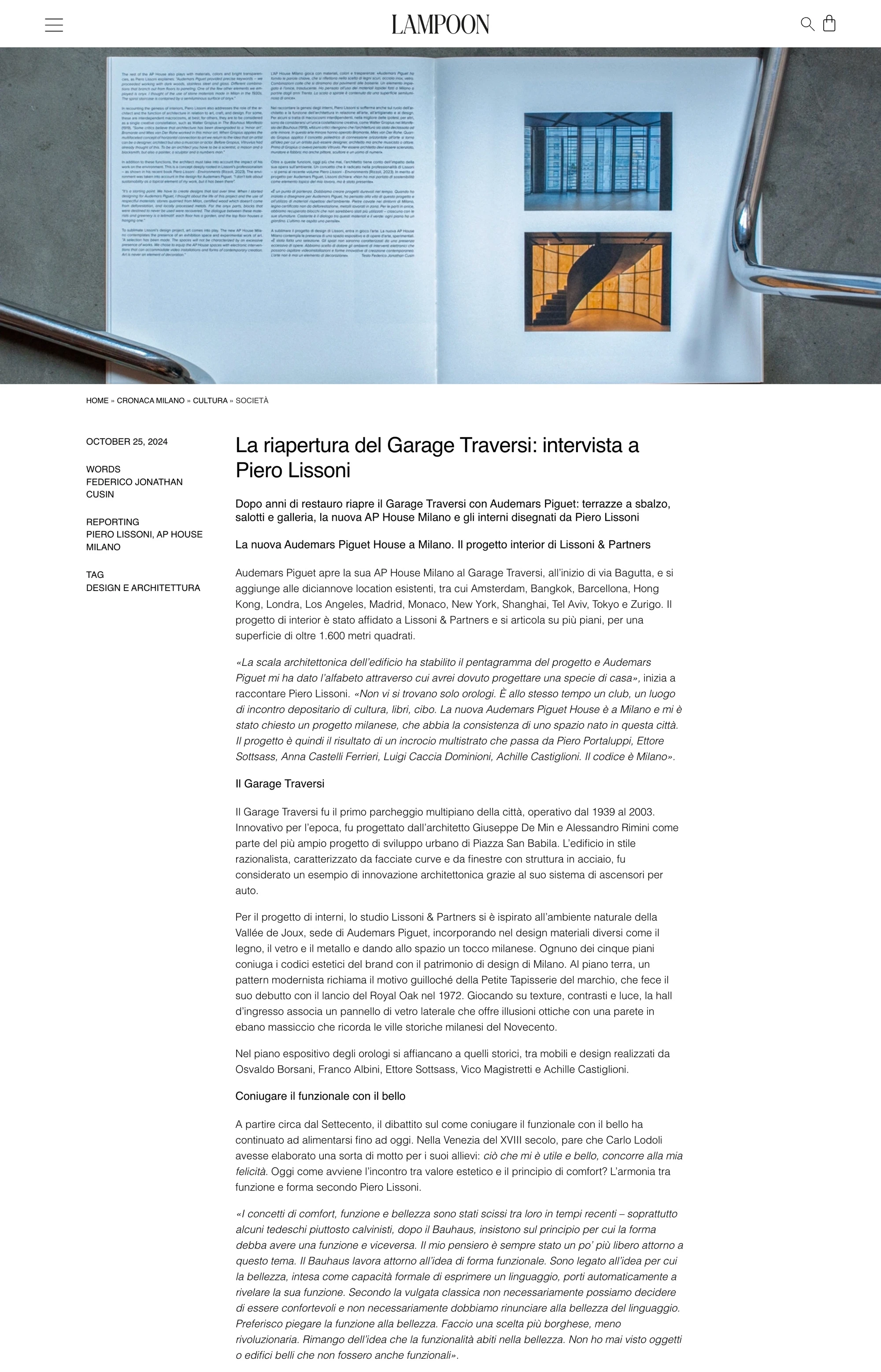 All contents of this website are protected by copyright and may not be reproduced, distributed or transmitted in any form without the prior written permission of Lissoni & Partners.